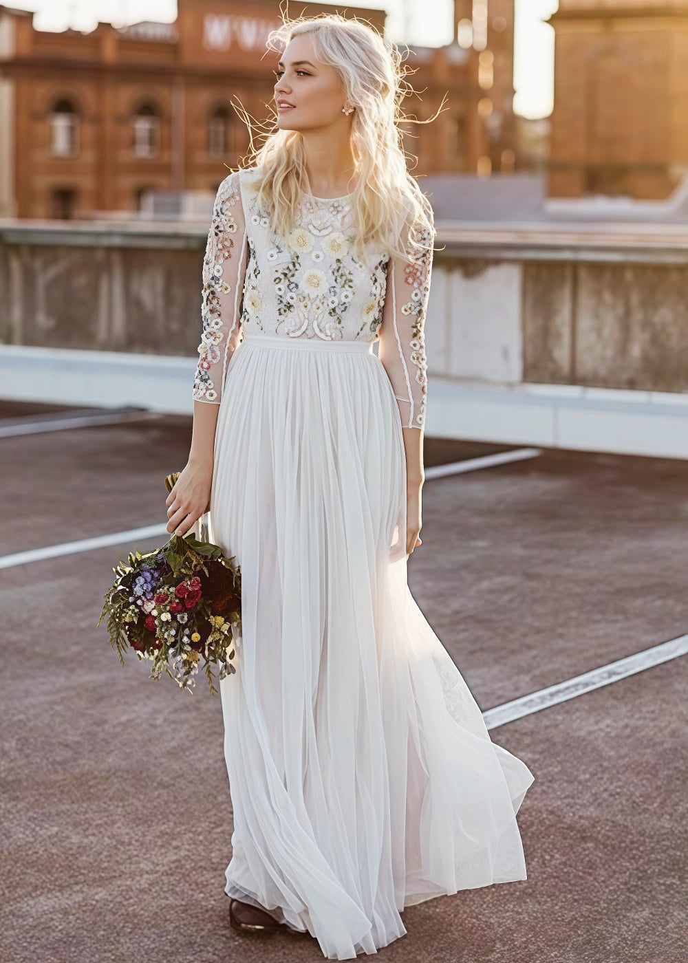 Whether you're planning a rustic wedding in the countryside, an urban rooftop ceremony, or a classic ballroom wedding, this dress is perfect. Its neutral color and elegant design make it adaptable to different themes. A happy customer shared, "It was the ideal choice for my outdoor wedding, blending in perfectly with the natural scenery."